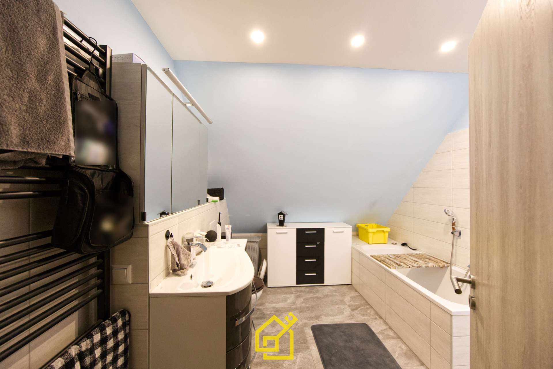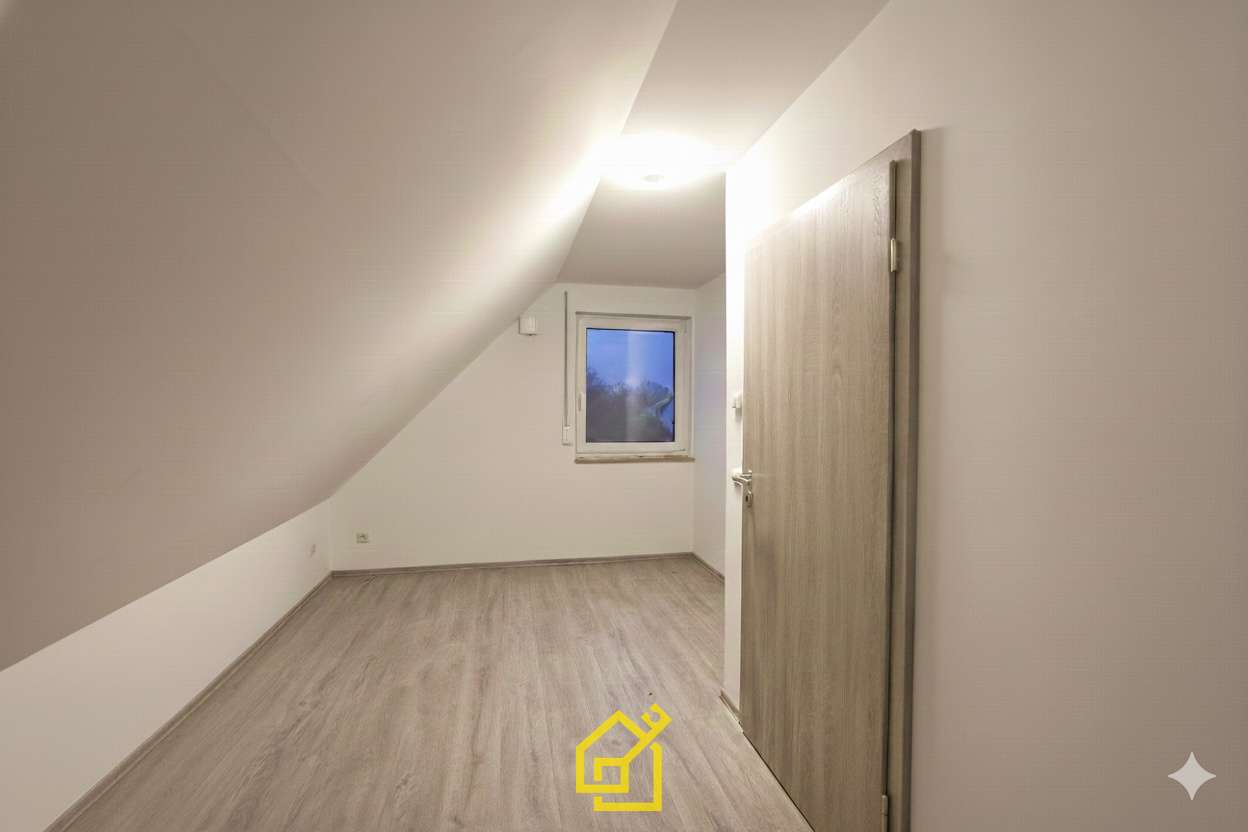 Im Dachgeschoss befinden sich drei gut geschnittene Zimmer – perfekt als Schlafzimmer, Kinder- und Arbeitszimmer geeignet – sowie ein modernes Familienbad mit Regendusche (inkl. Farblicht & Radio), Badewanne und Handtuchheizkörper. Ein Dachboden bietet zusätzlichen Stauraum.