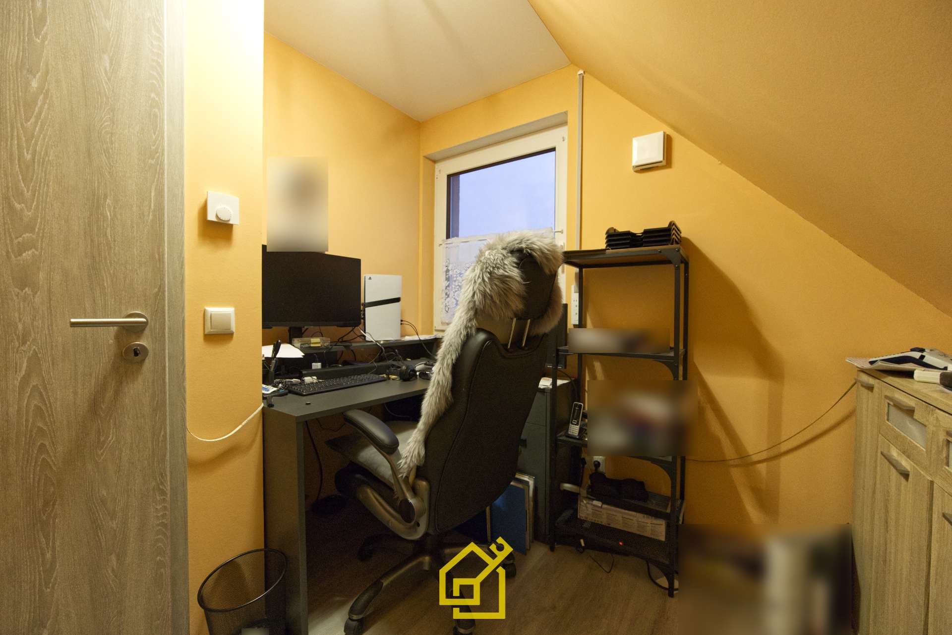 - Dachgeschoss: Flur, Bad, Arbeitszimmer, Kinderzimmer, Schlafzimmer